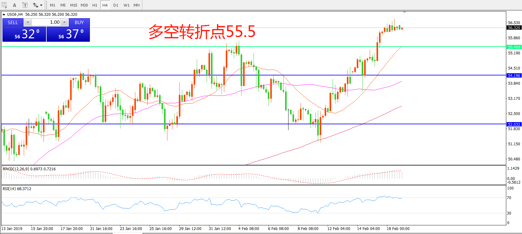 交易策略:在55.50  之上看涨,目标58.00    62.00