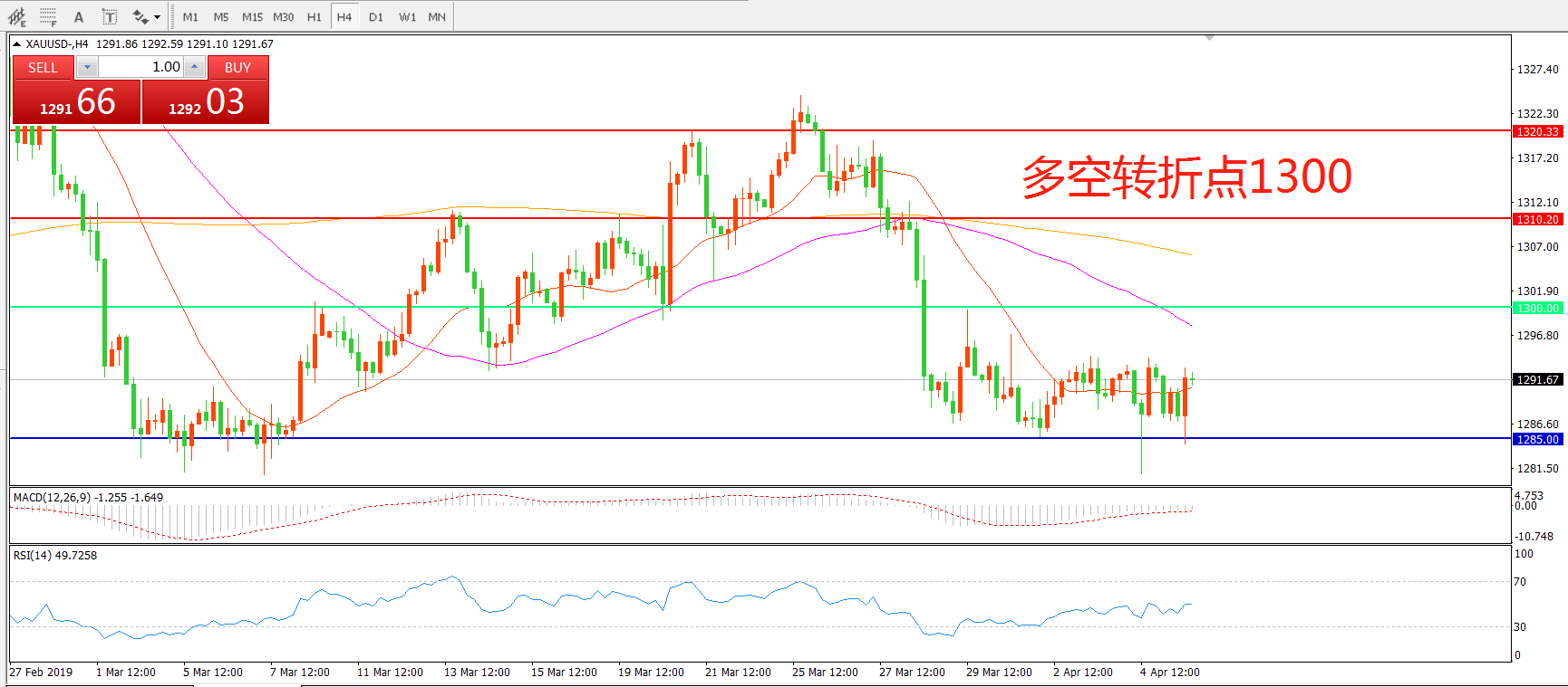 多空转折点:1300.00