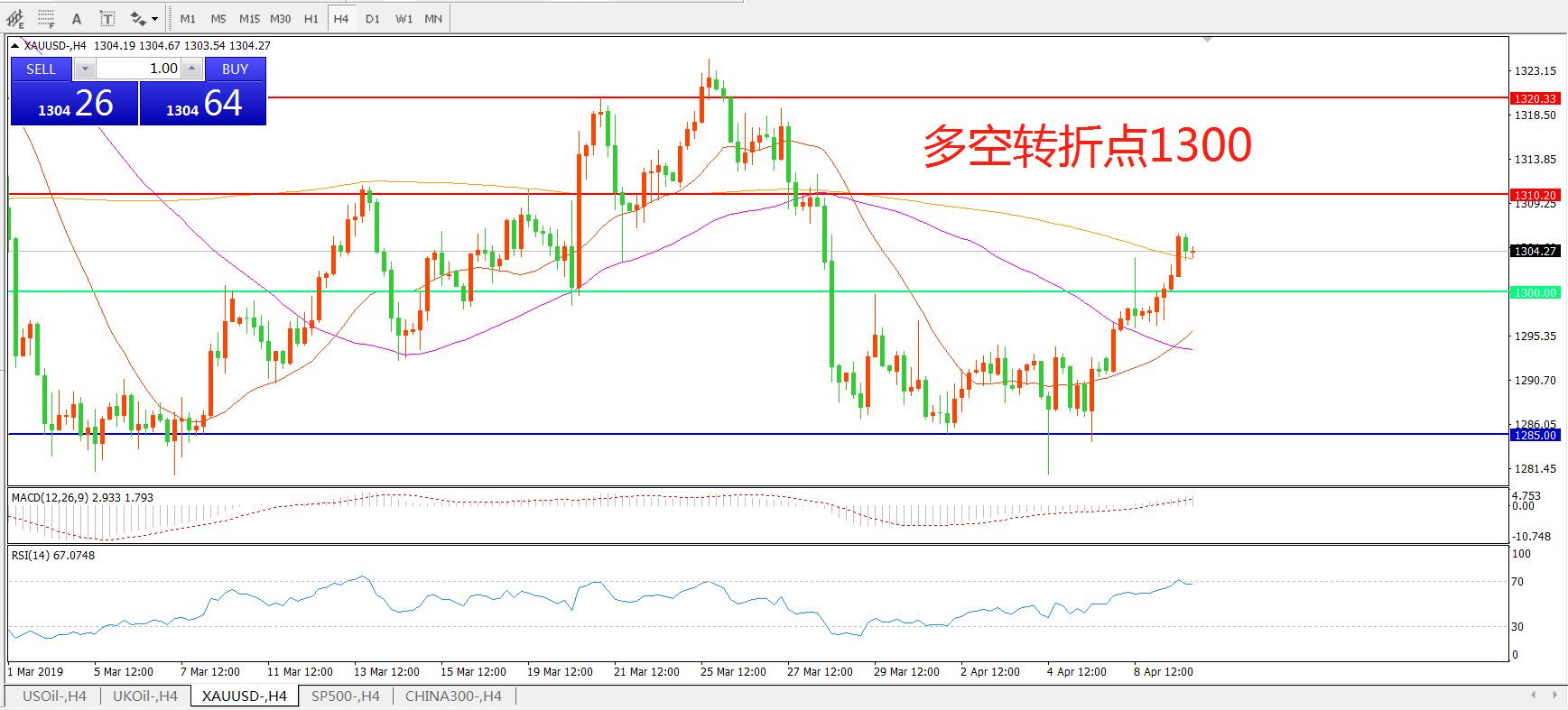 多空转折点:1300.00