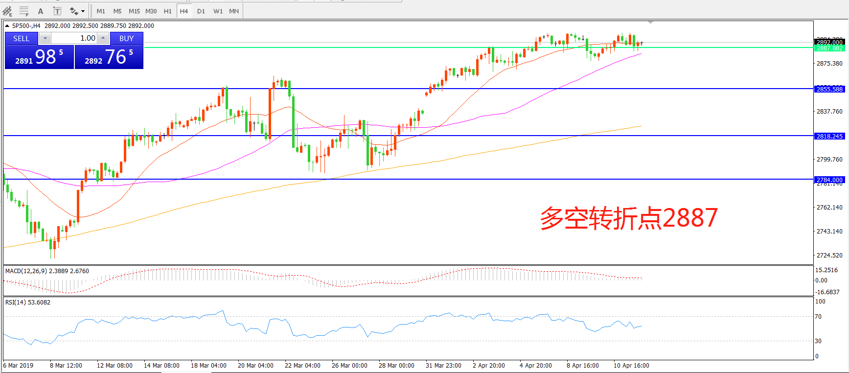 多空转折点:2887.00
