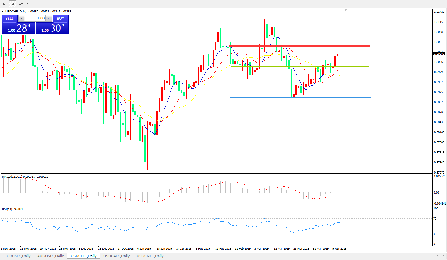 美元兑瑞郎USDCHF 日线图: