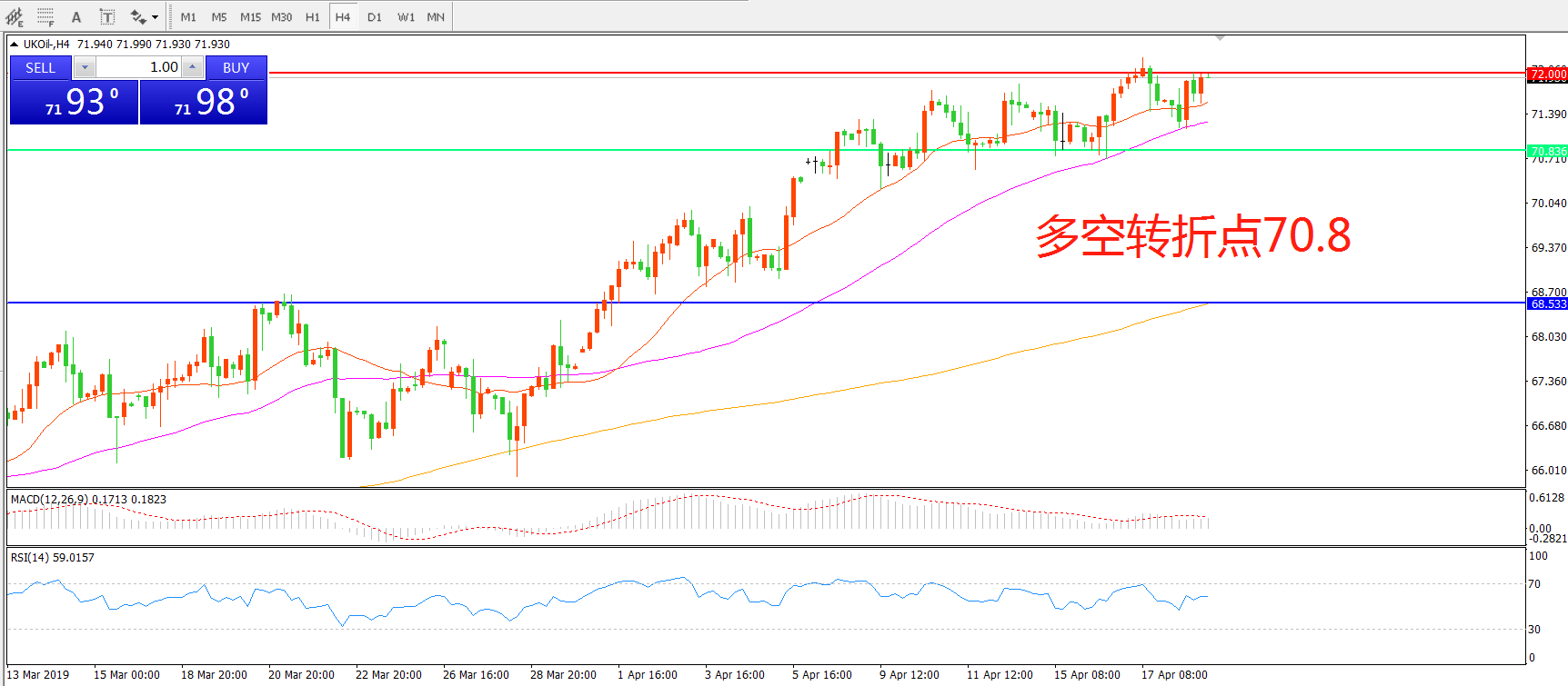 交易策略:在70.80之上看涨,目标72.00 74.50