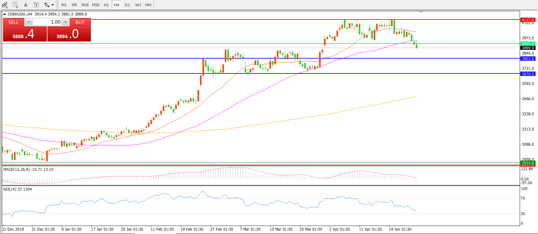 沪深300指数CHINA300 4小时图