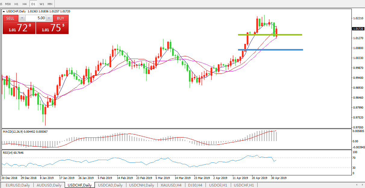 美元瑞郎USDCHF   日线图: