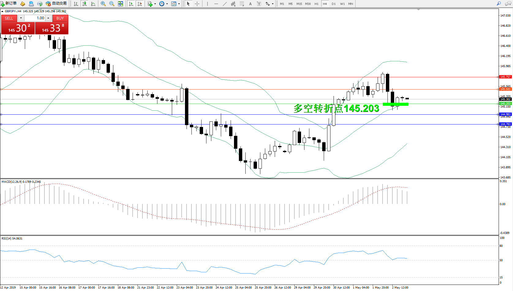 交易策略:145.203上方看涨,目标145.503145.757
