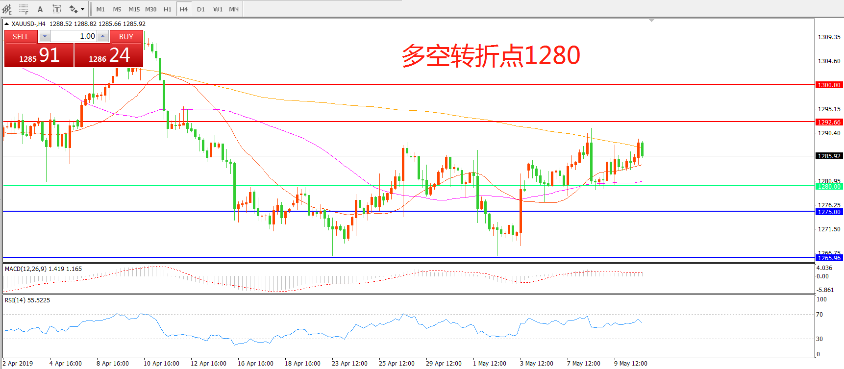 多空转折点:1280.00