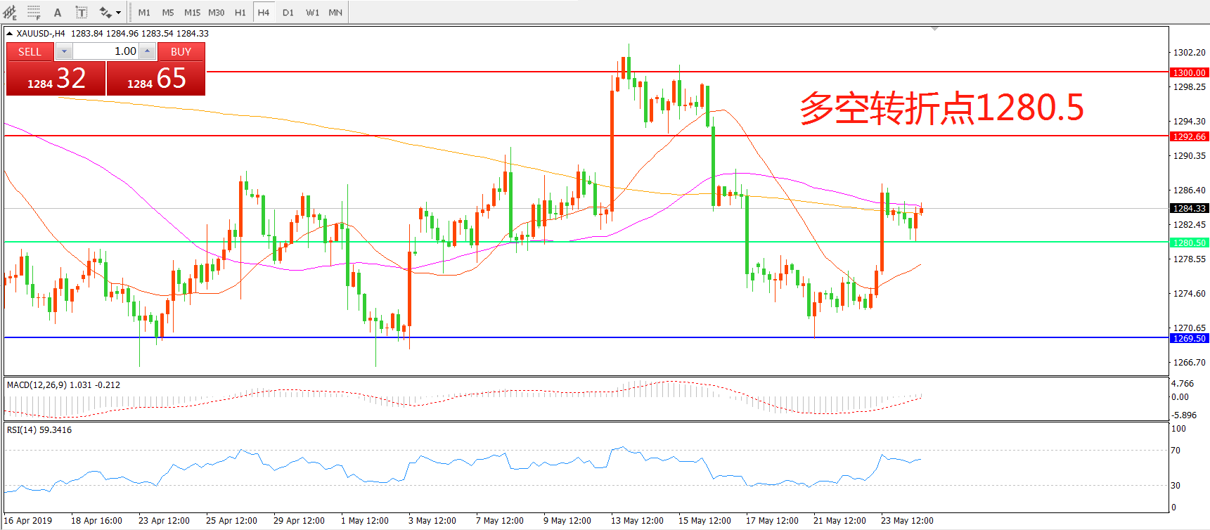 多空转折点:1280.50