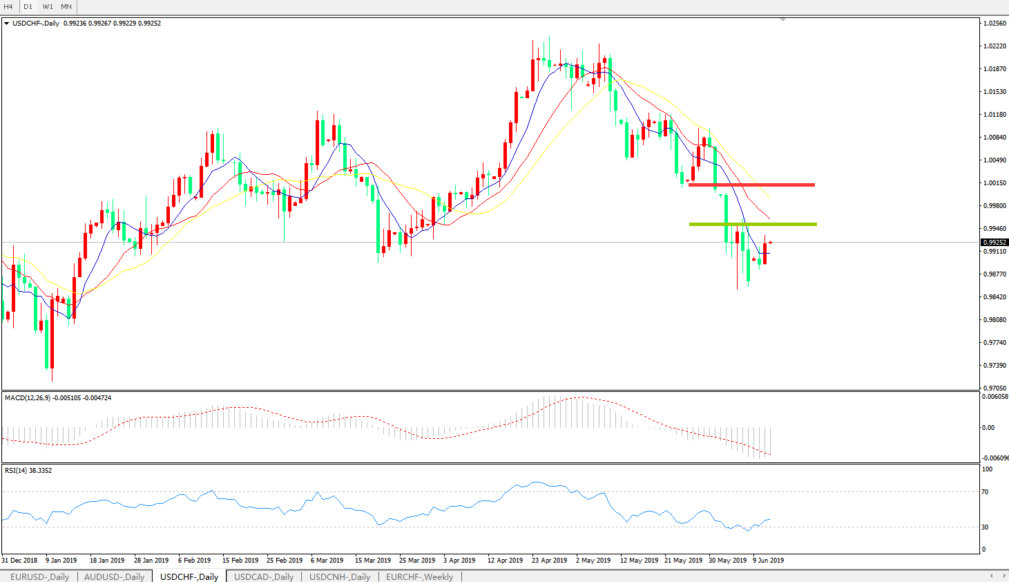 美元兑瑞郎USDCHF 日线图: