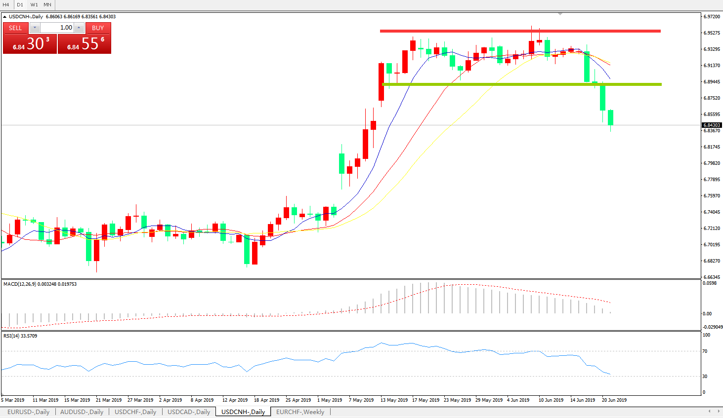 交易策略: 在6.8880之下,看跌,目标价位为6.8100,然后为6.7600。