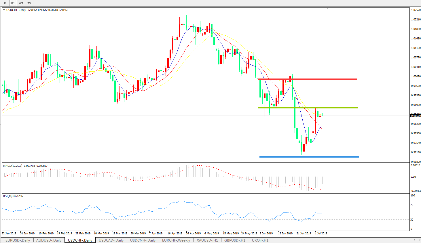 美元兑瑞郎USDCHF 日线图:
