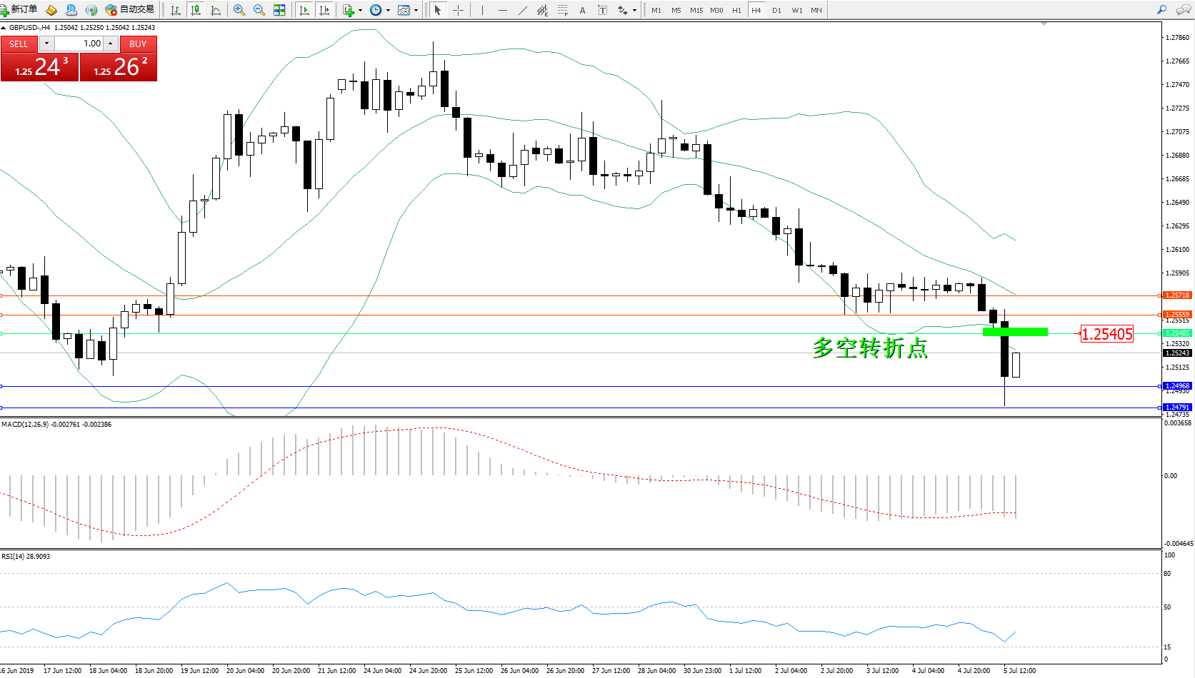 交易策略:1.25405下方看跌,目标1.249681.24791