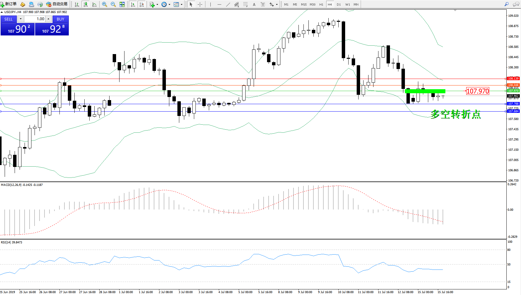交易策略:107.970下方看跌,目标107.788107.684