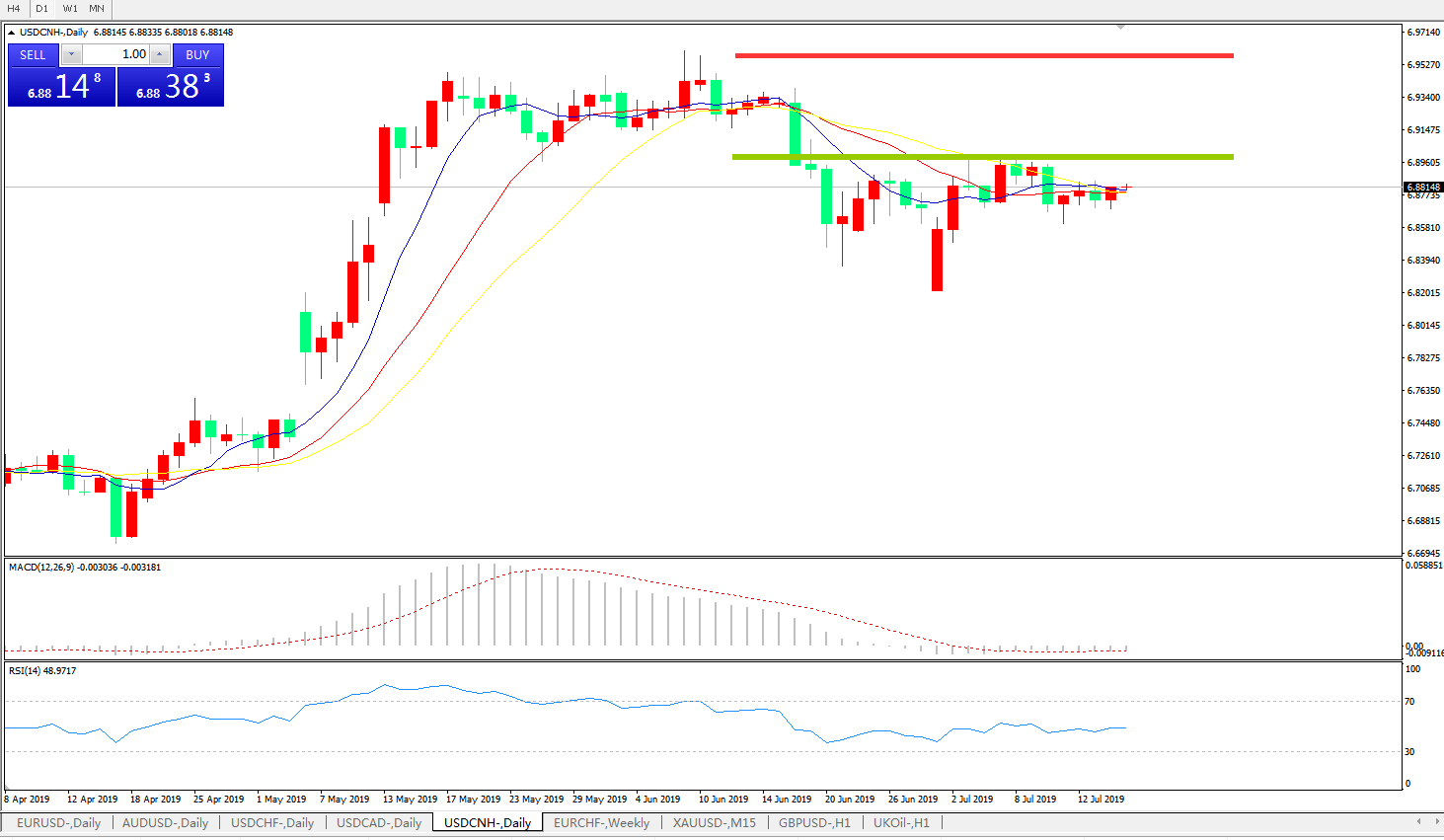 备选策略: 在6.9000之上,看涨,目标价位为6.9600,然后为6.9800。
