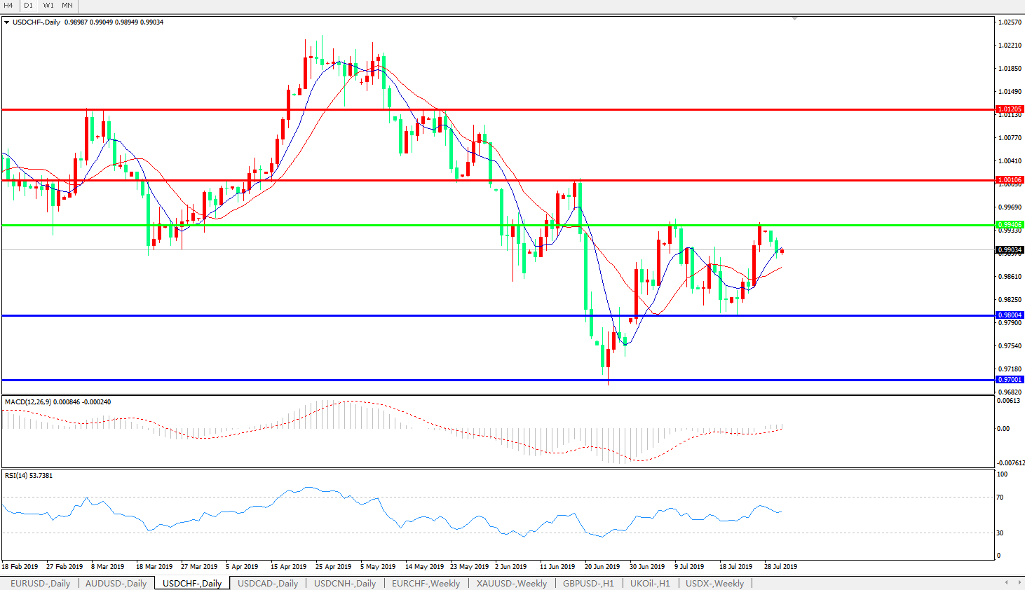 支撑位:0.9800、0.9700