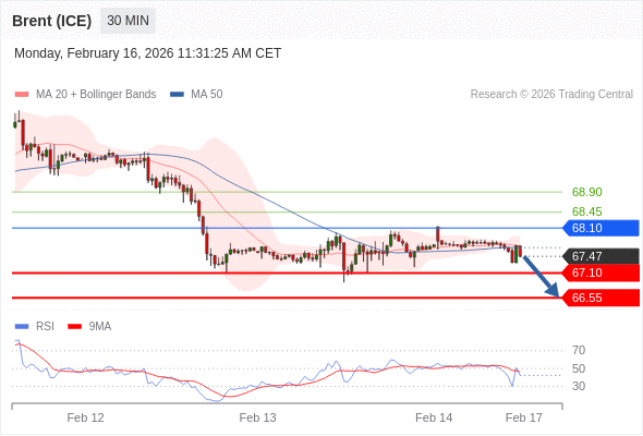 在 68.10 之下,看跌,目标价位为 67.10 ,然后为 66.55 。