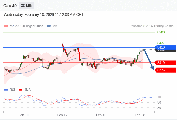 在 8410 之下,看跌,目标价位为 8319 ,然后为 8276 。