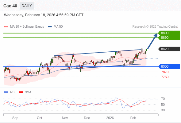 Cac 40 短线: 进一步上涨。