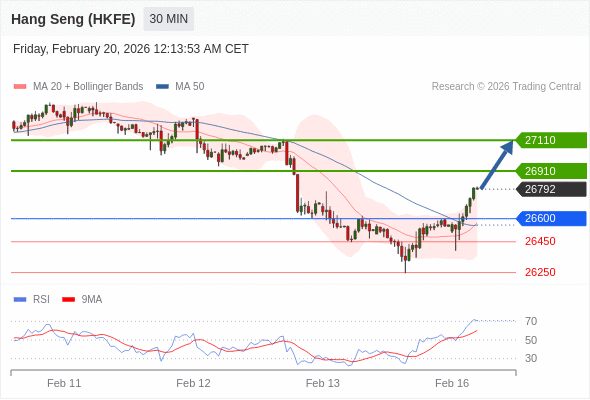 在 26600 之上,看涨,目标价位为 26950 ,然后为 27110 。