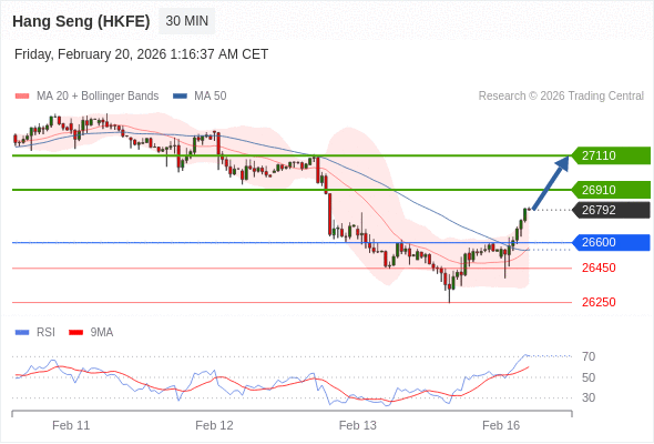 在 26600 之上,看涨,目标价位为 26910 ,然后为 27110 。