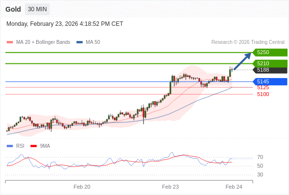 在 5145 之上,看涨,目标价位为 5210 ,然后为 5250 。