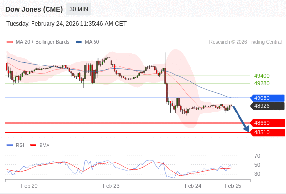 在 49050 之下,看跌,目标价位为 48660 ,然后为 48510 。