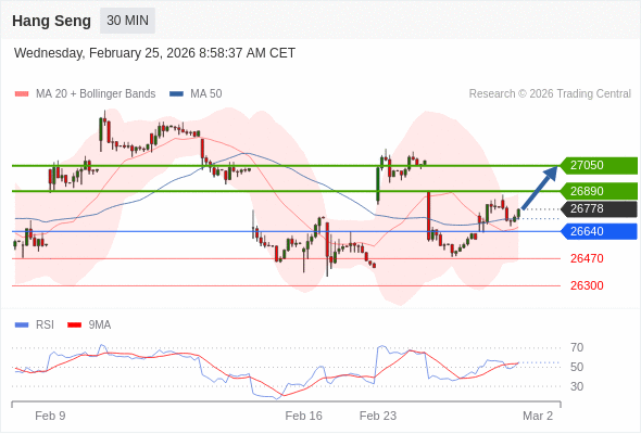 在 26640 之上,看涨,目标价位为 26890 ,然后为 27050 。
