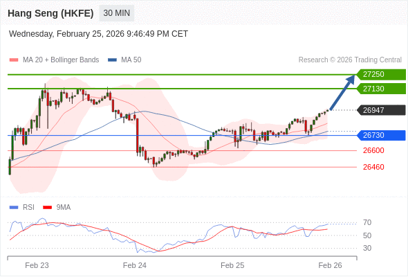 在 26730 之上,看涨,目标价位为 27130 ,然后为 27250 。