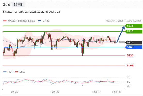 在 5160 之上,看涨,目标价位为 5215 ,然后为 5235 。