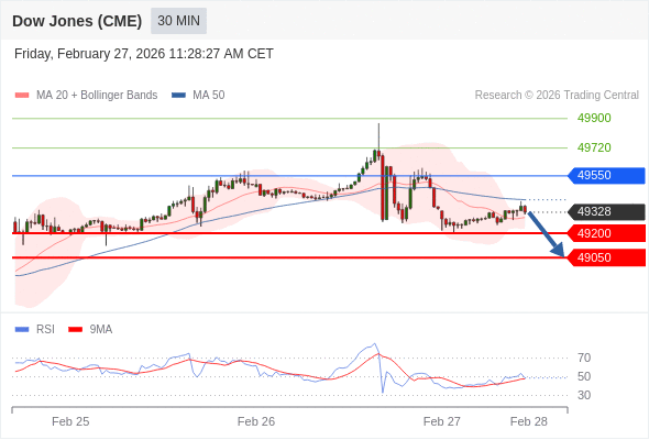 在 49550 之下,看跌,目标价位为 49200 ,然后为 49050 。