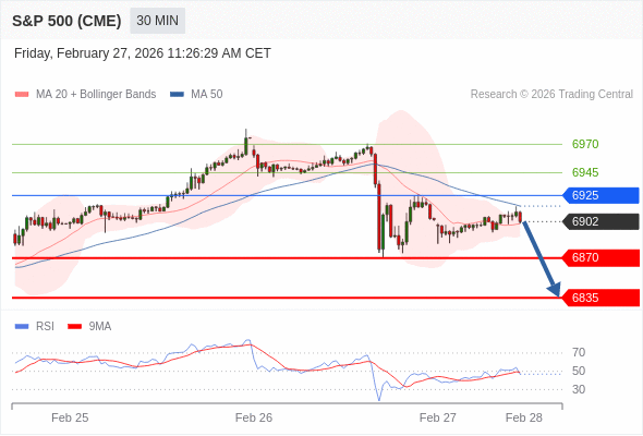 在 6925 之下,看跌,目标价位为 6870 ,然后为 6835 。