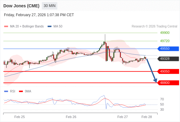 在 49550 之下,看跌,目标价位为 49050 ,然后为 48800 。
