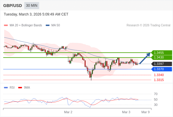 在 1.3370 之上,看涨,目标价位为 1.3430 ,然后为 1.3455 。