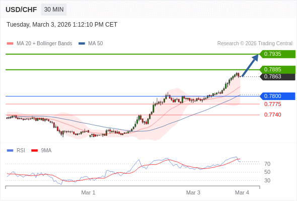 美元/瑞郎 当日内: 进一步上涨。