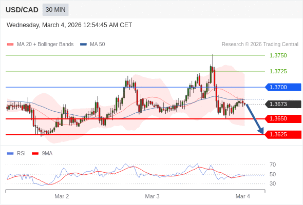 交易策略: 在 1.3700 之下,看跌,目标价位为 1.3650 ,然后为 1.3625 。