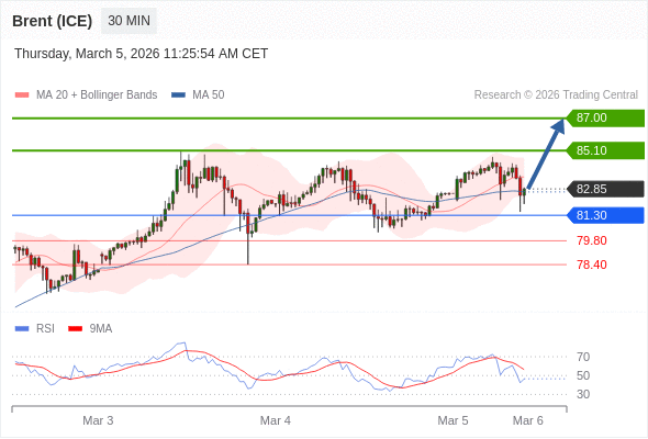 在 81.30 之上,看涨,目标价位为 85.10 ,然后为 87.00 。