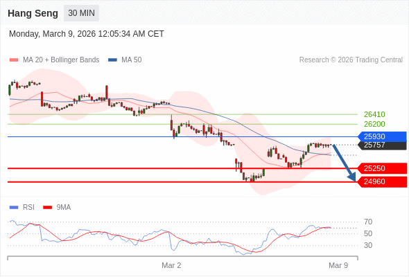 交易策略: 在 25930 之下,看跌,目标价位为 25250 ,然后为 24960 。