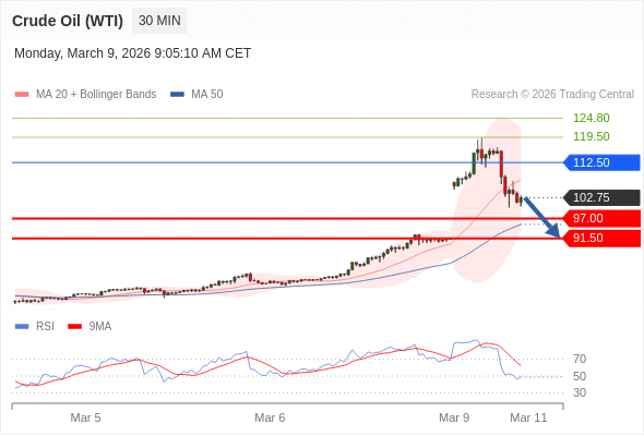 交易策略: 在 112.50 之下,看跌,目标价位为 97.00 ,然后为 91.50 。