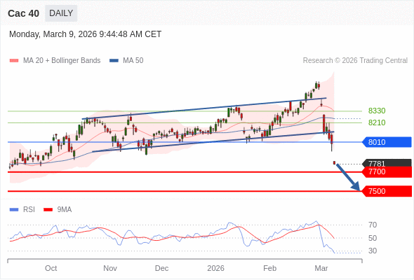 Cac 40 短线: 期待7700。
