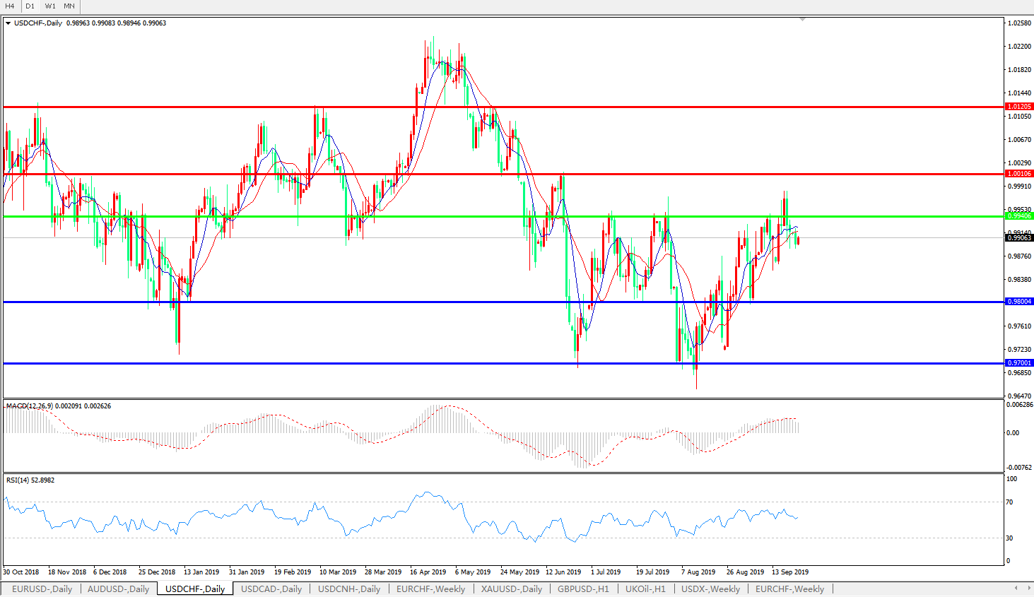 美元兑瑞郎USDCHF 日线图: