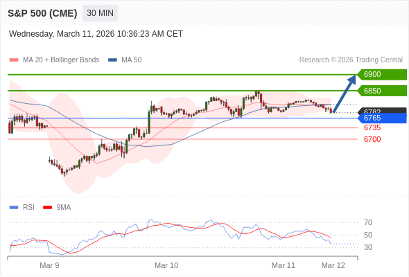 在 6765 之上,看涨,目标价位为 6850 ,然后为 6900 。