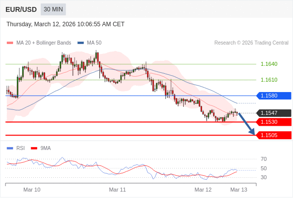 交易策略: 在 1.1580 之下,看跌,目标价位为 1.1530 ,然后为 1.1505 。