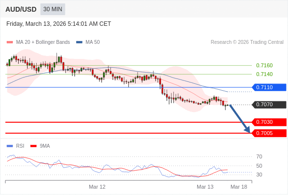 交易策略: 在 0.7110 之下,看跌,目标价位为 0.7030 ,然后为 0.7005 。