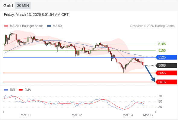 在 5125 之下,看跌,目标价位为 5055 ,然后为 5015 。
