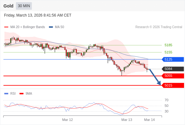 在 5125 之下,看跌,目标价位为 5055 ,然后为 5015 。