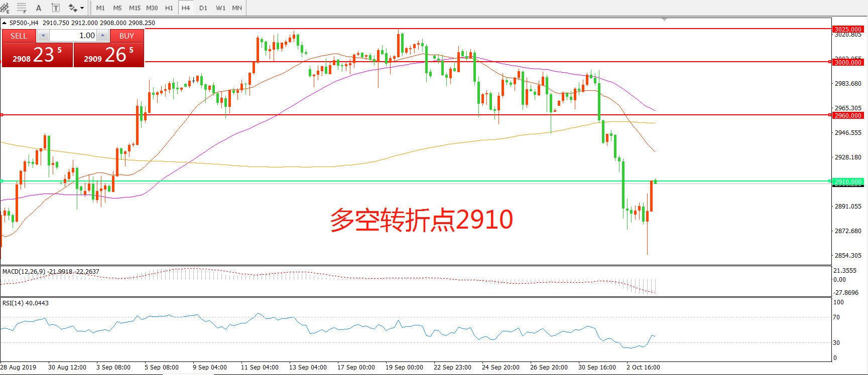 多空转折点:2910.00