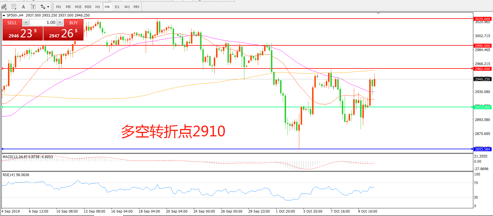 多空转折点:2910.00