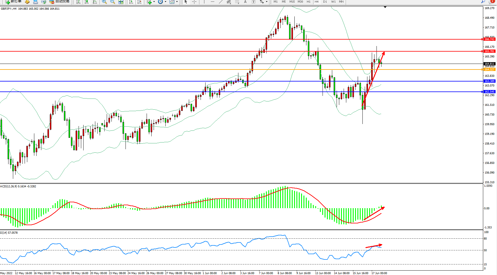 交易策略:164.327上方看涨,目标165.781、166.743