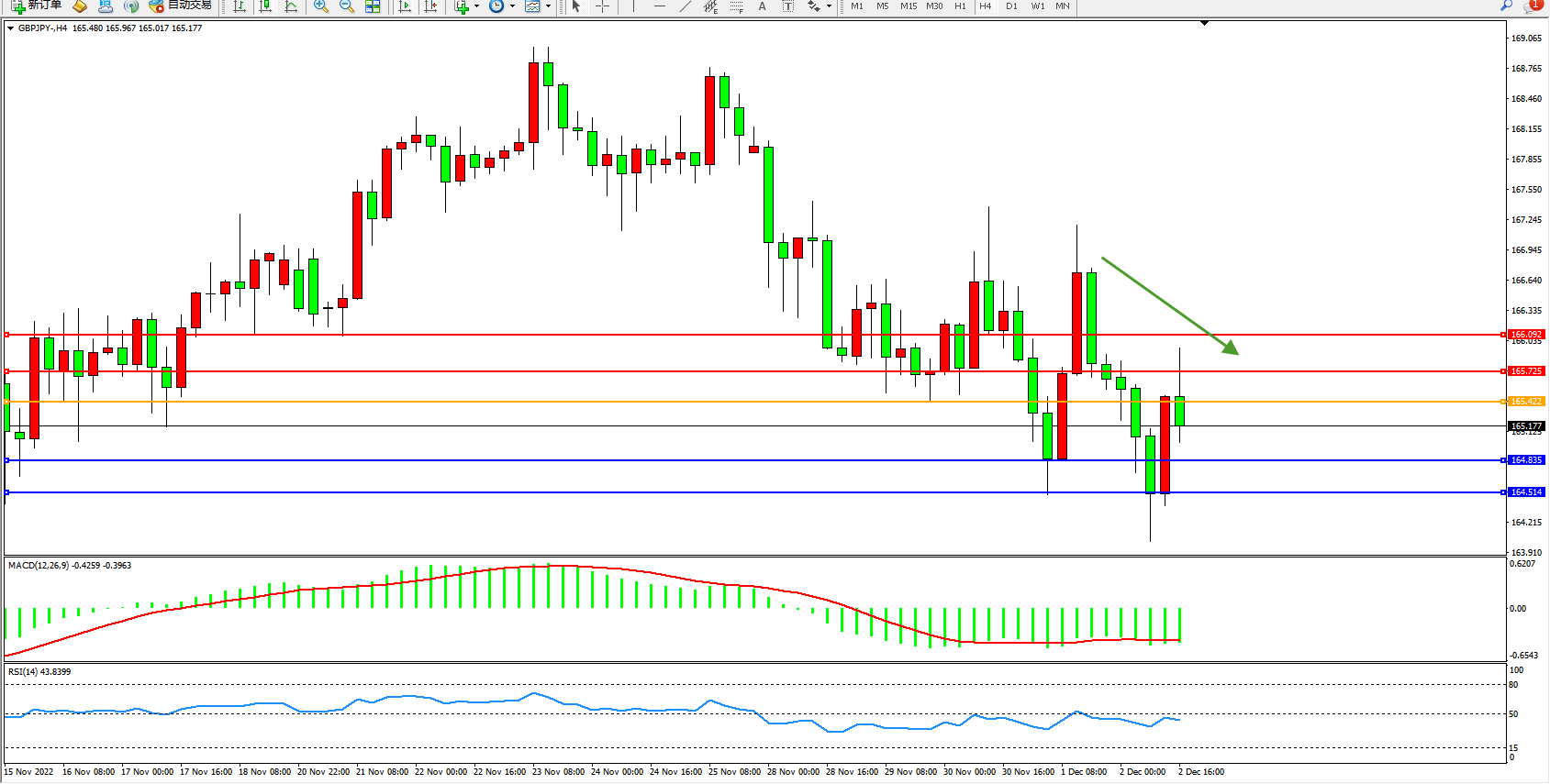 交易策略:165.422下方看跌,目标164.835、164.514