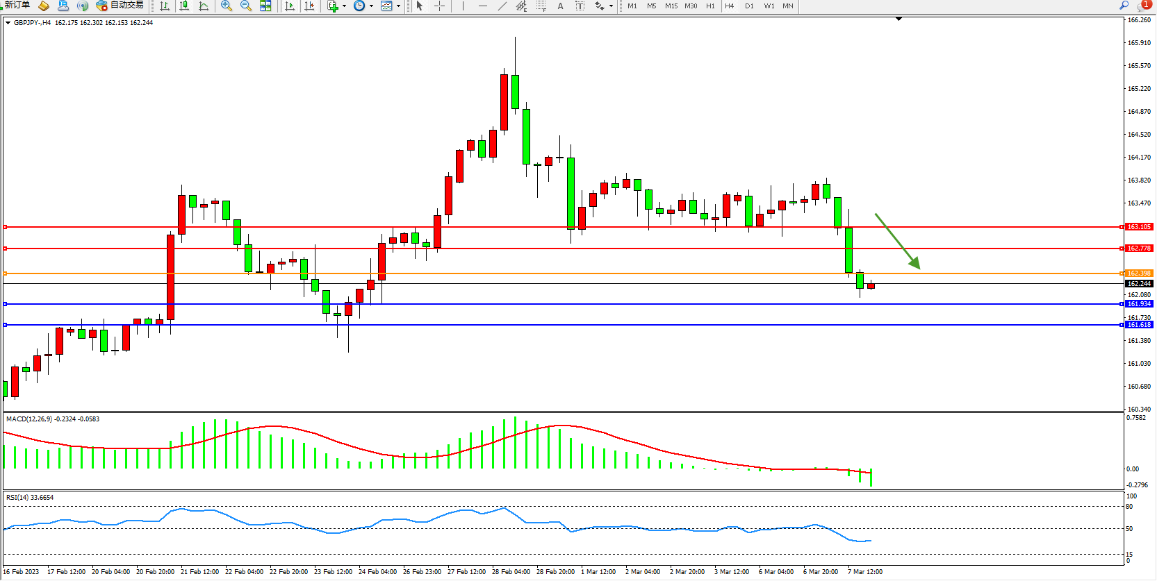 交易策略:162.398下方看跌,目标161.934  161.618
