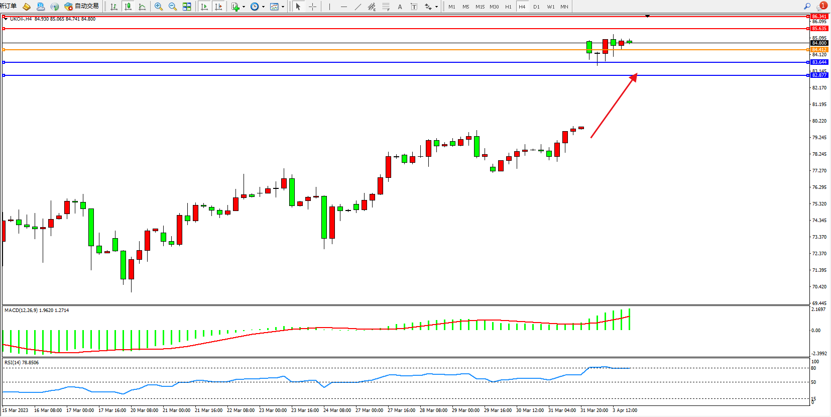 布油UKOil——4小时K线图显示: